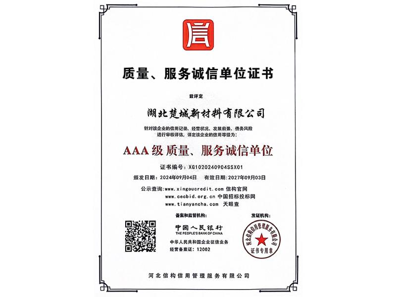 质量服务诚信单位证书