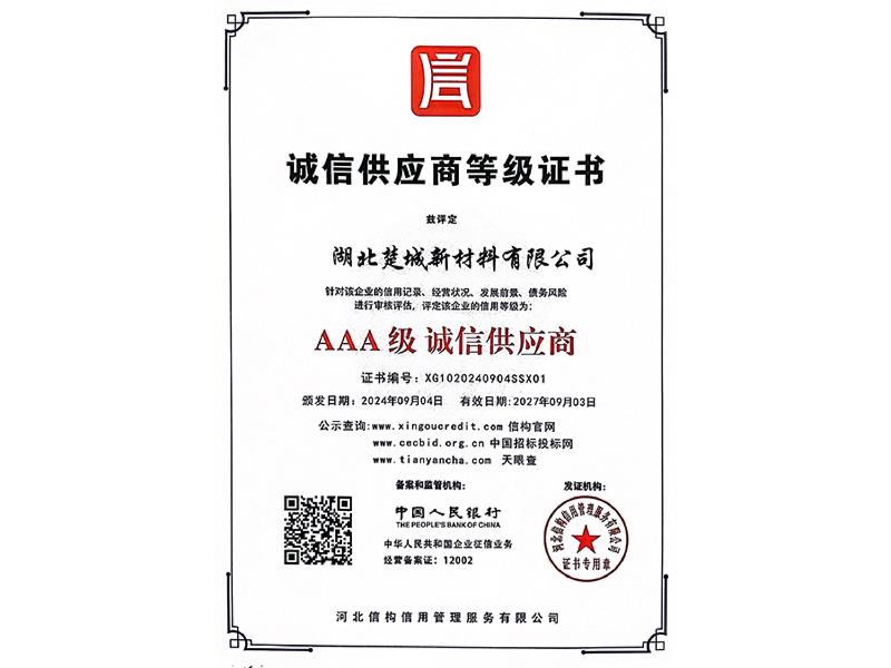 诚信供应商等级证书